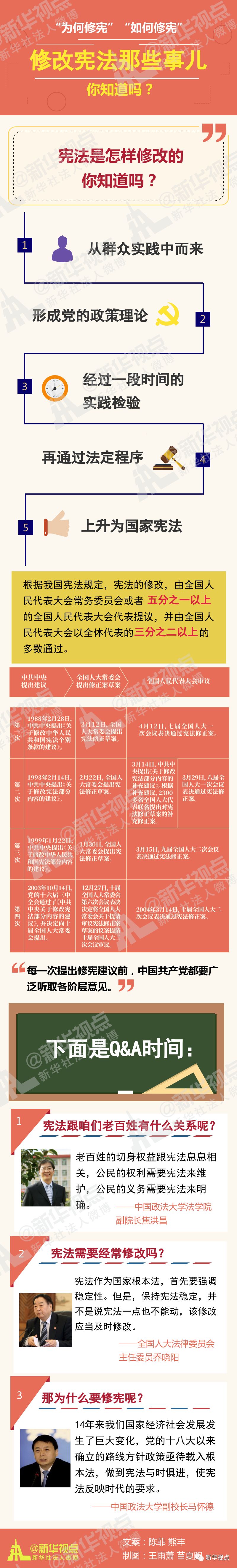 《中共中央关于修改宪法部分内容的建议》在刚刚闭幕的十九届二中全会审议通过。这是时隔14年我国再次启动修宪。宪法是国家的根本法,是治国安邦的总章程,是党和人民意志的集中体现。宪法修改是国家政治生活中的一件大事。这么重要的根本法,是怎样修改的你知道吗?