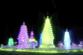 黑龙江哈尔滨市的冰灯使得中国灯文化大放异彩。