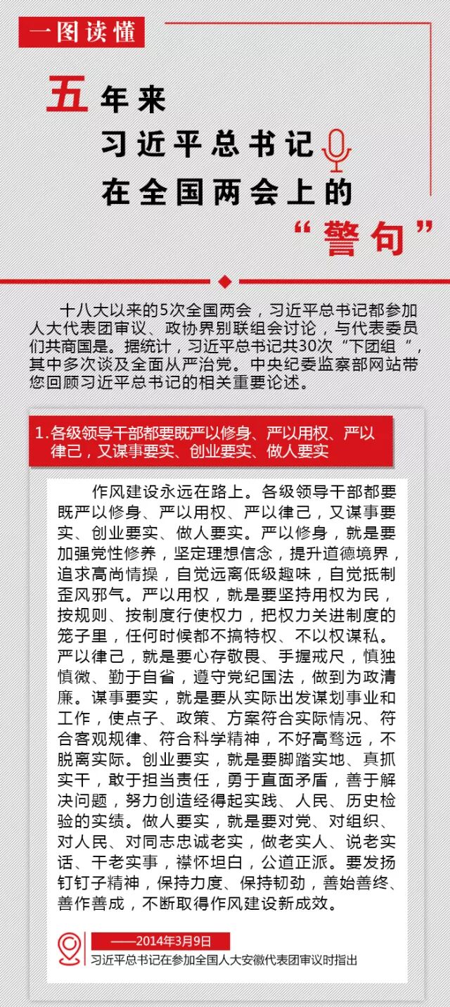 一图读懂:五年来习近平总书记在全国两会上的"警句"