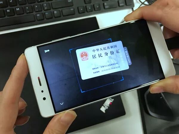 手机在联网环境下,扫描二代身份证带有国徽和长城图案的一面。