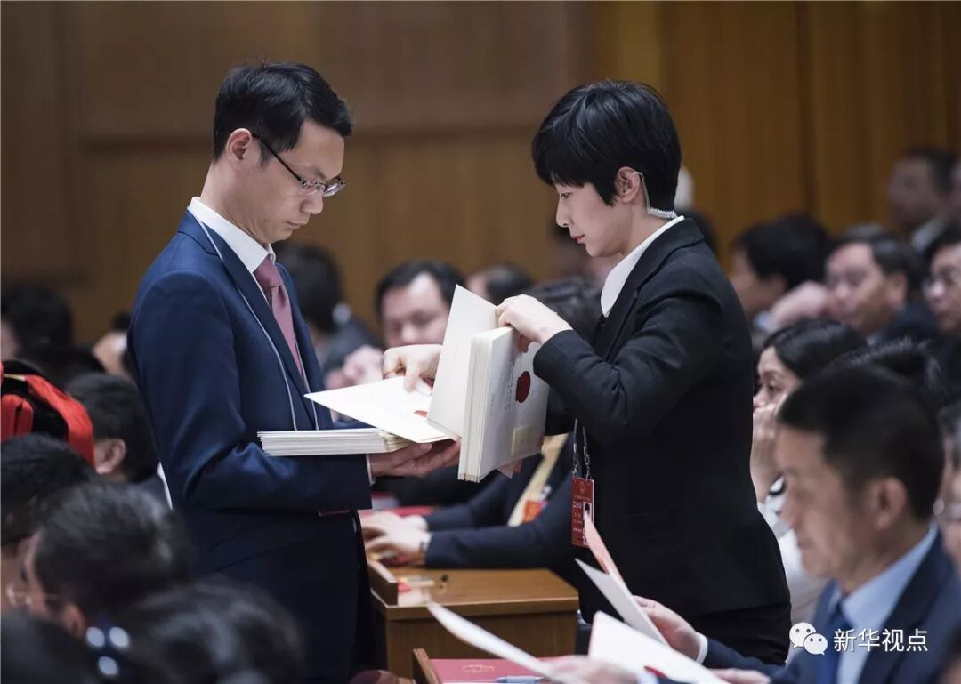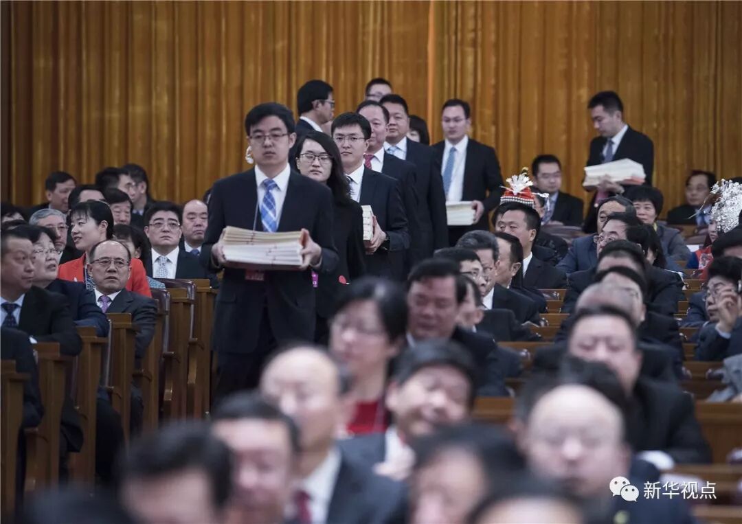 3月11日,十三届全国人大一次会议在北京人民大会堂举行第三次全体会议。这是工作人员在发票。新华社记者 李涛 摄