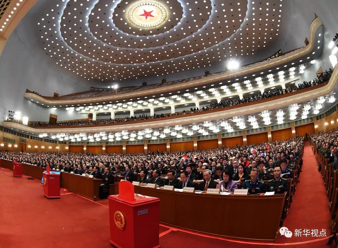3月11日,十三届全国人大一次会议在北京人民大会堂举行第三次全体会议。新华社记者 饶爱民 摄