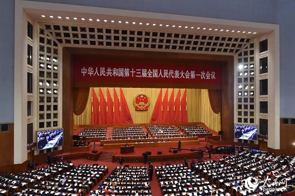 3月13日上午9时,十三届全国人大一次会议在人民大会堂举行第四次全体会议。人民网记者翁奇羽摄