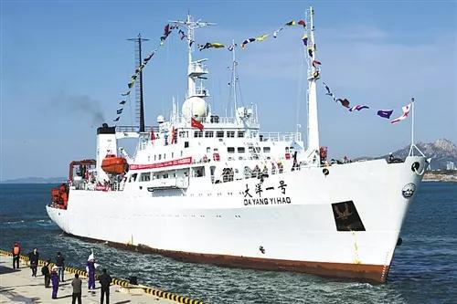 △5月3日,我国远洋科考功勋船“大洋一号”完成“海龙”“潜龙”系列潜水器海试任务后,返回青岛母港。 (新华社发)