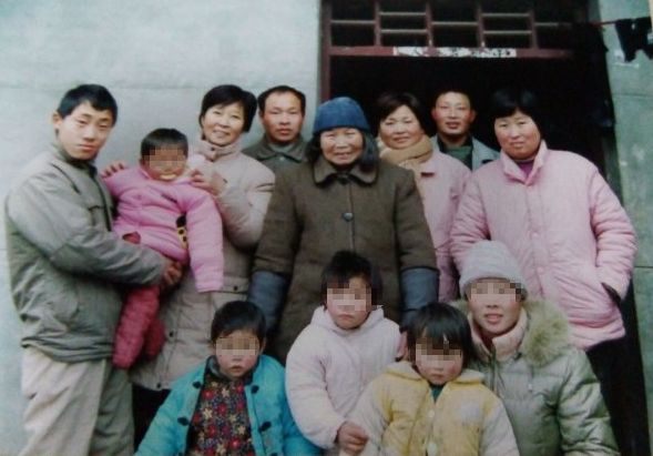 这张老照片拍摄于2004年1月,陈志凤(上排左3)去安徽看望孩子(上排左2)