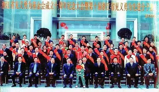 原来,2005年11月,李敏和爷爷代表李学生参加浙江省见义勇为基金会成立10周年纪念大会暨第十届浙江省见义勇为先进分子表彰会,这张照片就是当时的合影。