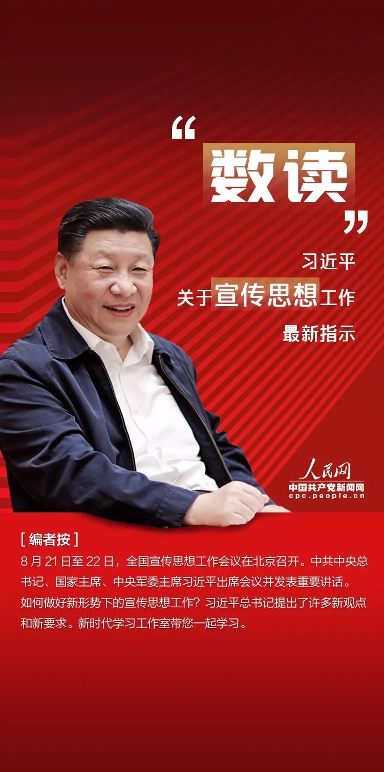 8月21日至22日,全国宣传思想工作会议在北京召开。中共中央总书记、国家主席、中央军委主席习近平出席会议并发表重要讲话。如何做好新形势下的宣传思想工作?习近平总书记提出了许多新观点和新要求。新时代学习工作室带您一起学习。