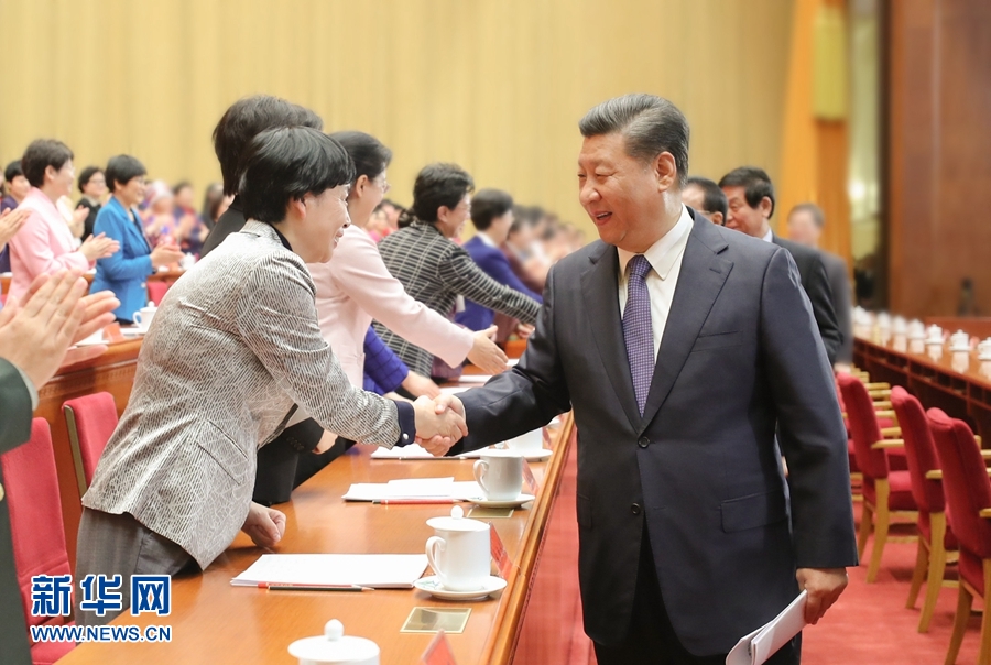 10月30日,中国妇女第十二次全国代表大会在北京人民大会堂开幕。这是中共中央总书记、国家主席、中央军委主席习近平等同与会代表亲切握手。新华社记者 鞠鹏 摄