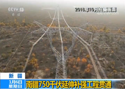 央视网消息:昨天(1月5号),随着最后一段导线展放成功,新疆南疆750千伏电网延伸补强工程全线贯通。