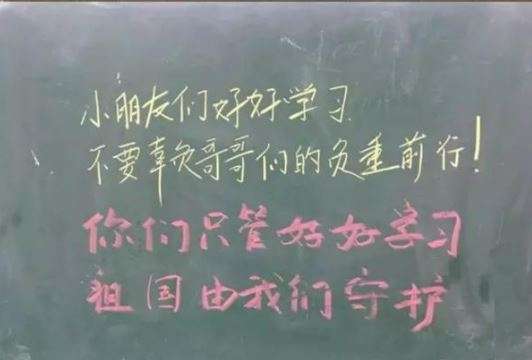 岁月静好,只因有人负重前行。可以说,教室黑板上的留言,可能就是让很多人一辈子难忘的“生动一课”。对于什么是人民军队人民爱的鱼水情,在孩子们心中,不再只是课本上读到的故事、老师讲的道理,而是亲身经历,是发自内心的感动和认同。他们定会终身难忘,会从中获得向上的力量,会对“最可爱的人”心生崇敬。
