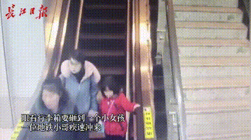 “本来准备抱走孩子,但根本来不及了,只好越过孩子挡住行李箱”,事发后,地铁小哥回忆情景,“掉行李的乘客在尖叫,箱子和电梯摩擦也发出巨大声响。回头看时,行李箱正在疾速滚落。”