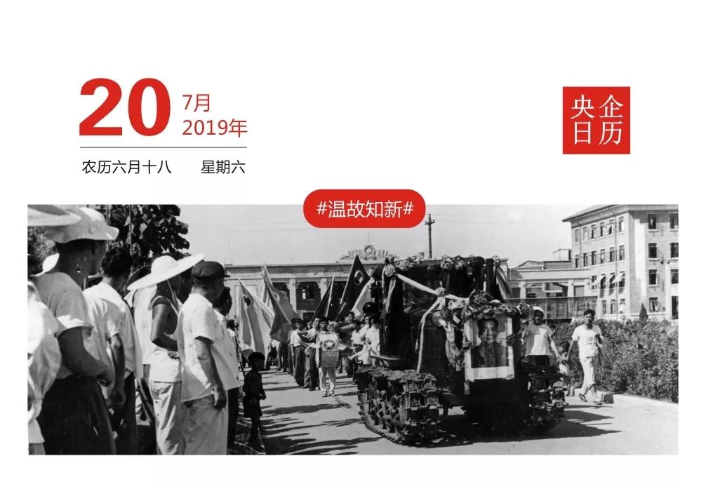 7月20日,新中国第一台“东方红”54型履带式拖拉机,隆隆驶出厂大门,接受人民群众的欢呼与庆祝。