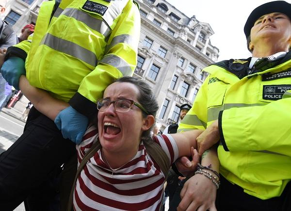 2019年4月,伦敦气候变化活动人士游行抗议,遭到警方强制清场。