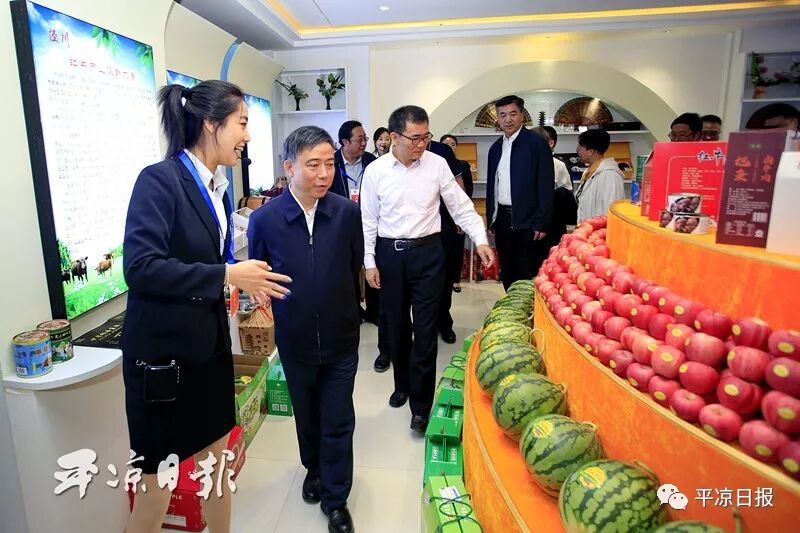 9月6日,与会领导参观平凉特色农产品和旅游商品展。平凉日报全媒体记者 杨昕 摄