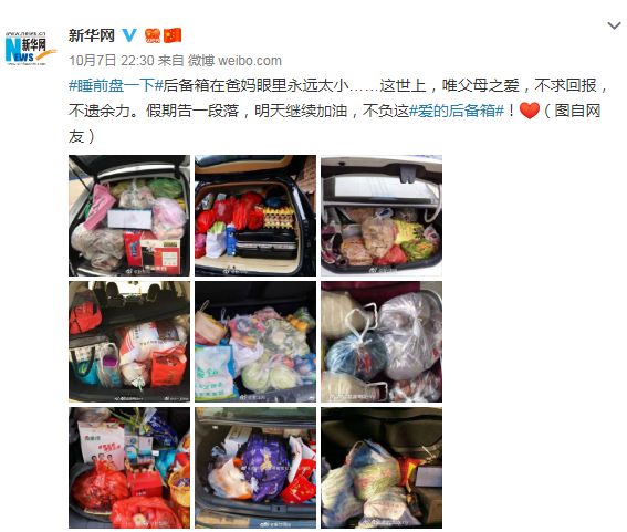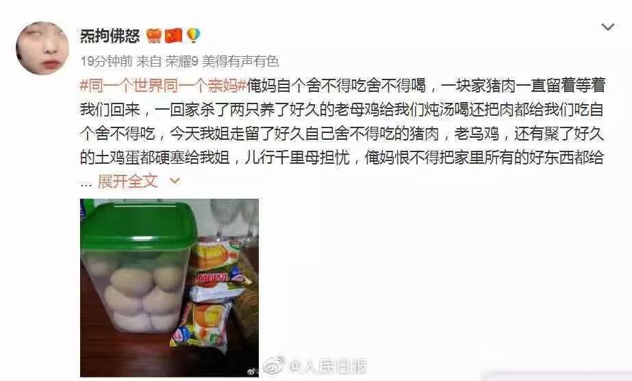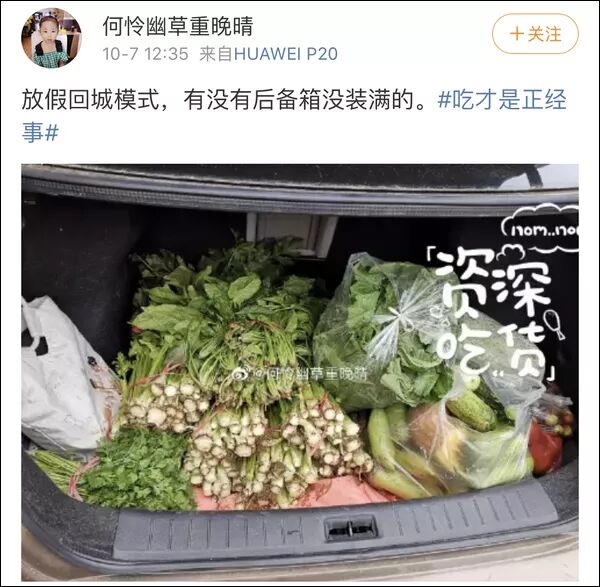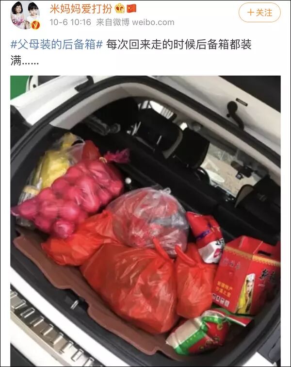 @一个充满热情且理智的人:我没有车,打的顺风车,然后我妈给我塞了油,冷吃兔,一袋核桃,鸡,鸭,牛肉,还顺了2个地瓜。还特意给我包了粽子,我在想,有车岂不是家都要搬空