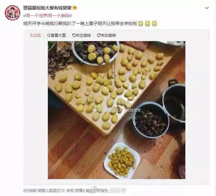 @张恬瑜:我的行李箱装了一半的吃的,里面有奶奶剥好的核桃仁还有我中秋没吃到的月饼还有好多我爱吃的