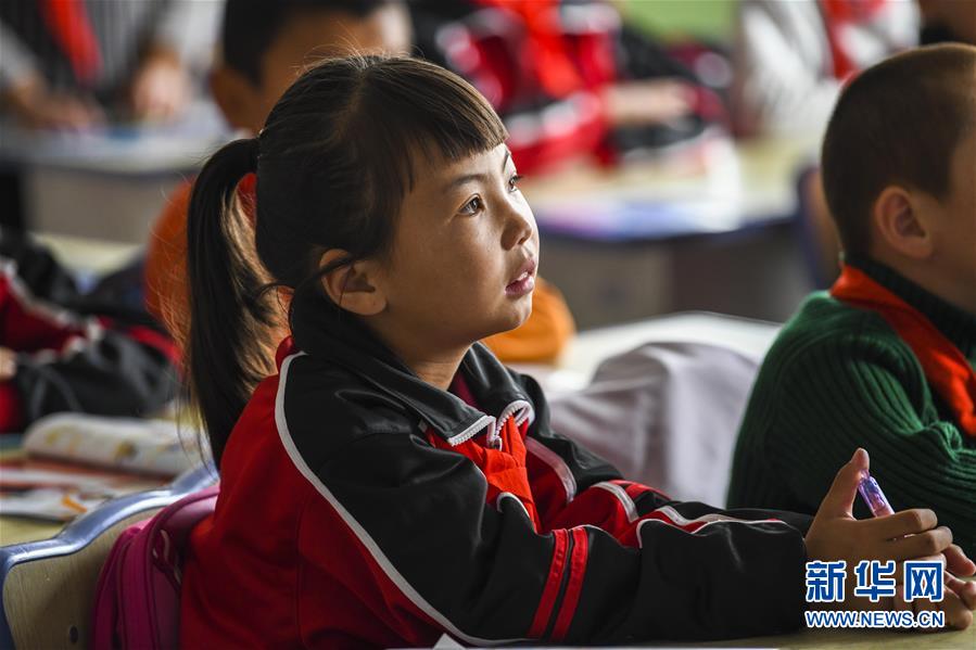 在哈密幸福村小学里,孩子们在用电采暖的教室里上课(10月22日摄)。新华社记者 赵戈 摄
