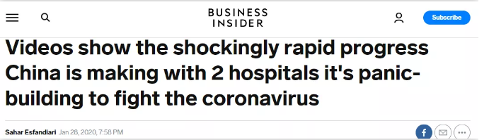 商业内幕网——《视频显示,中国正以令人震惊的速度建起两座防疫医院》