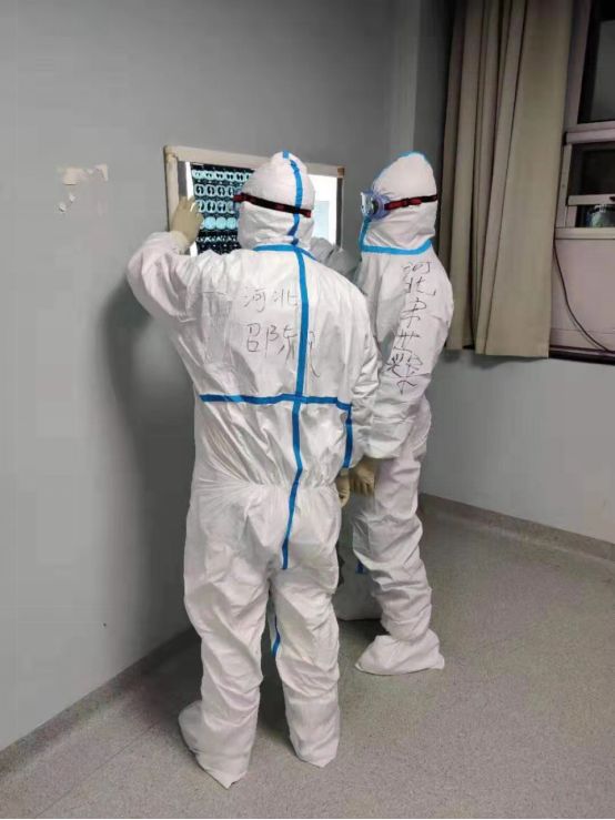 我也经常会在病房里被一些小小的瞬间感动到。我觉得有时候病人真的是挺可爱的,我就记得那时候那个96年的那个年轻小伙子就看着我们的隔离服,他说我每天都看你们全部的人穿成这个样子,我都分不出来你们谁是谁啊,然后他就拿那个记号笔在我们衣服后面写“平安喜乐”。他还给我们拍照,然后隔着那个隔离病房从窗户里透过来给我们点赞,你知道吗?真的让你觉得很温暖呐。