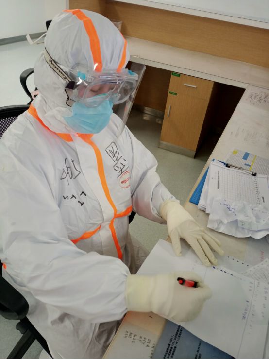 我是吉林医药学院附属医院的护士李抒墨。今天是我支援武汉的第8天。在我值班期间,有位叔叔需要输液,而我这是第一次带着这么多层手套给患者做穿刺。由于戴着多层手套,摸着血管的手感会变差,第一次,我穿刺失败了。我很抱歉地对着叔叔说对不起,而叔叔却反过来安慰我,他说:“我知道,你们穿着这身装备很不舒服。不要紧,再扎一次。”我当时很感动,第二次穿刺我成功了,叔叔对我竖起了大拇指。我真的很感谢他们对我的理解。
