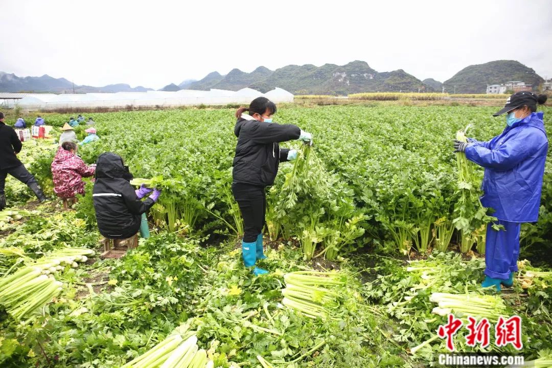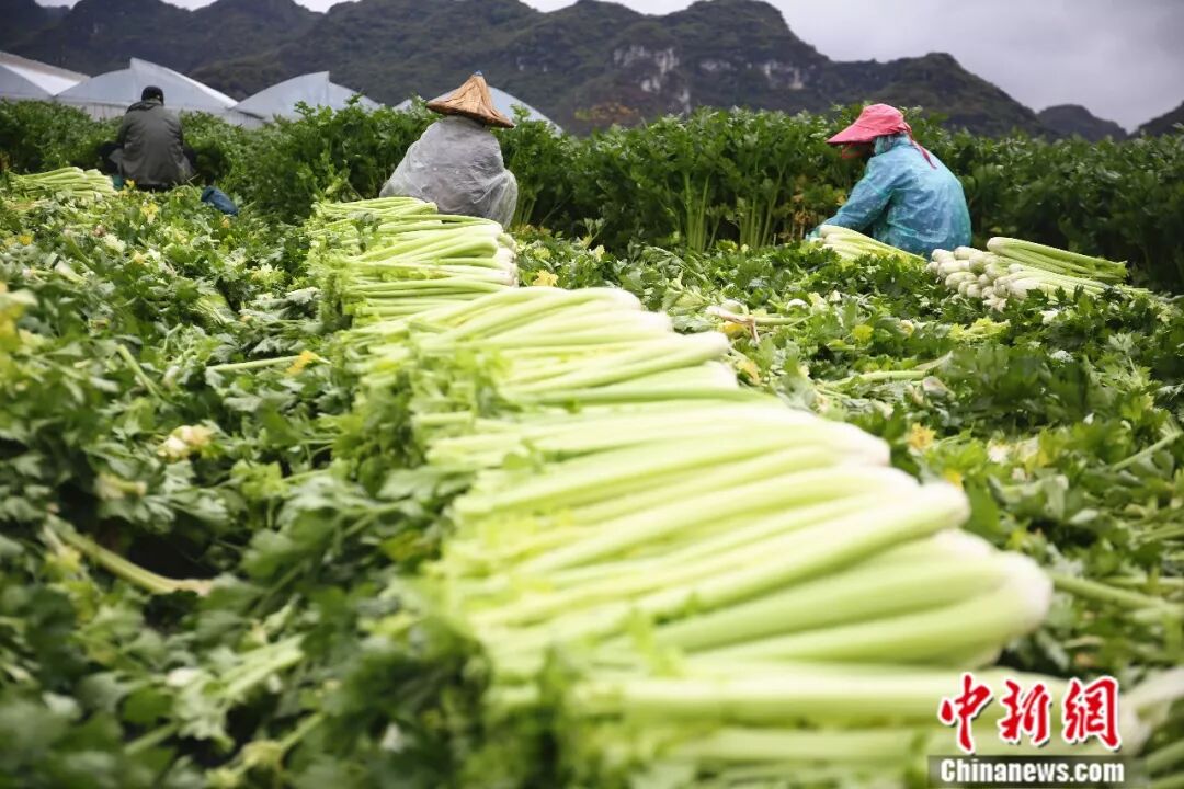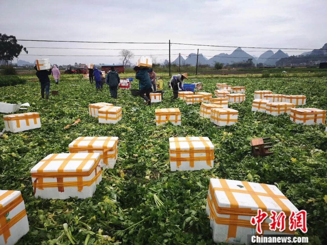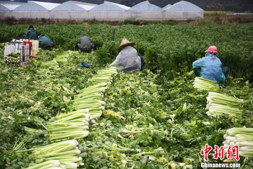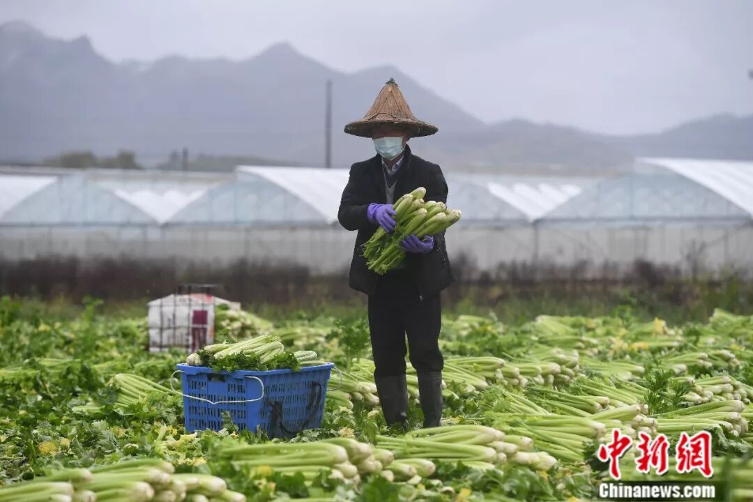 2月4日,人们在忙着搬运打包好的西芹。朱柳融 摄