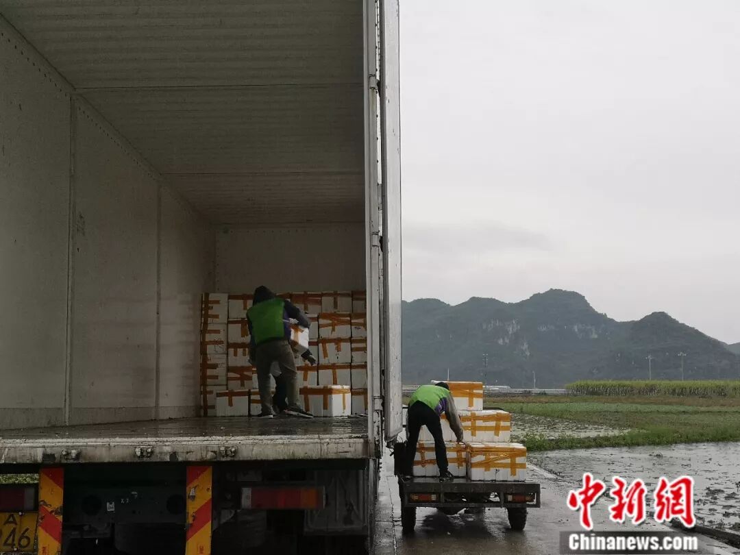 2月4日6时30分许,家里的五个年轻人和几名工人,加上三名快递工人冒着雨,用了约两个小时将207箱共1万余斤完成装车。爸爸对我说:“记得和他们说,不够的下次我们一定会补上。”