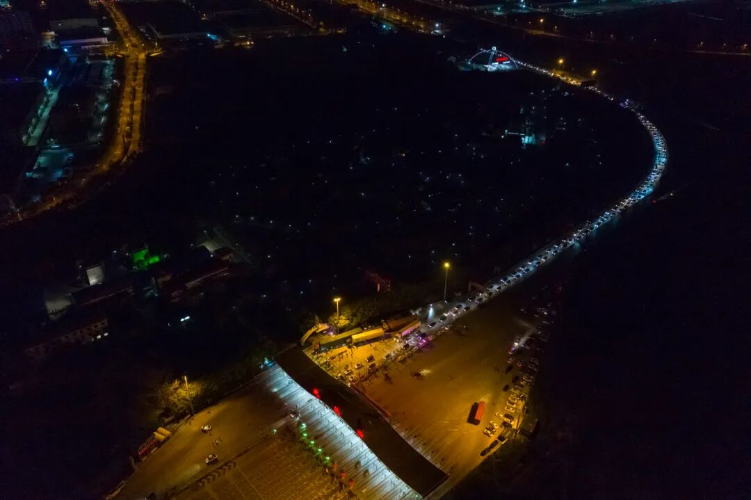 4月8日零时起,武汉市正式解除离汉离鄂通道管控措施,全市景观照明开启(无人机拍摄)。
