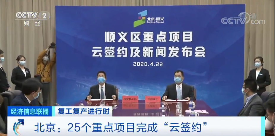 4月22日,在北京顺义,15组共计25个重点项目采用网络云签约及视频同步转播的方式成功签约,投资额超过200亿元。