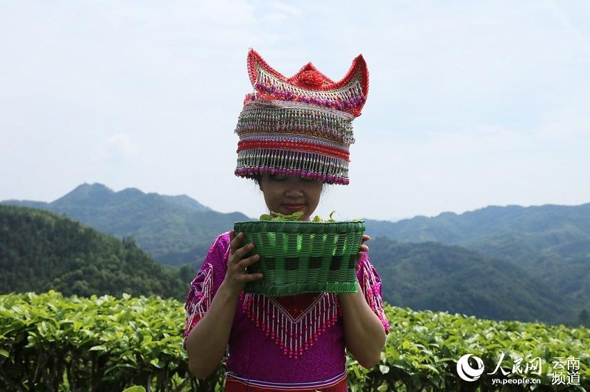 人民网文山5月2日电 (程浩)云南省广南县地处滇东南石漠化地区,是云南7个尚未摘帽的贫困县之一,这里有茶园面积40余万亩。4月底,春茶季末尾,在广南县底圩乡诚信农民专业合作社的万亩茶山上,放眼望去,一片绿色的海洋在蓝天下显得格外好看。