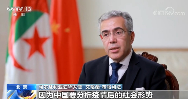 阿尔及利亚驻华大使 艾哈桑·布哈利法:如果有一个模式要效仿的话,那就是中国人民面对这次疫情的严谨、奉献和纪律。国际社会应该一起努力,赋予“共同”这个词真正的意义。中国即将召开全国两会,这非常关键,因为中国要分析疫情后的社会形势,确定下一阶段目标,确保中国经济更有力、更稳健、更活跃,所有这些决策也将对世界产生重要影响。