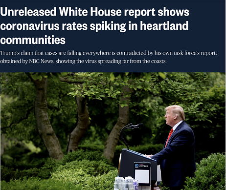 △NBC5月12日报道《白宫内部报告显示病毒仍在美国腹地传播》