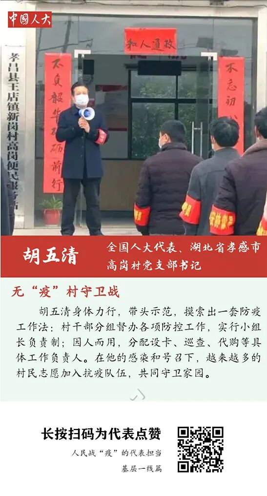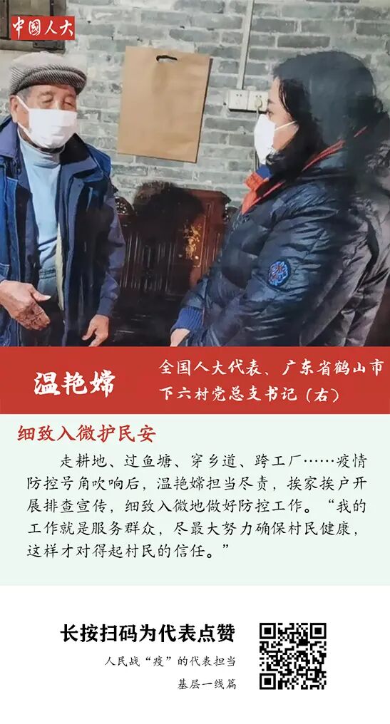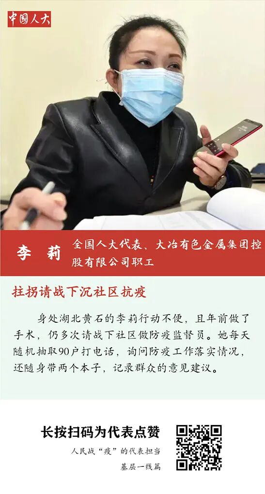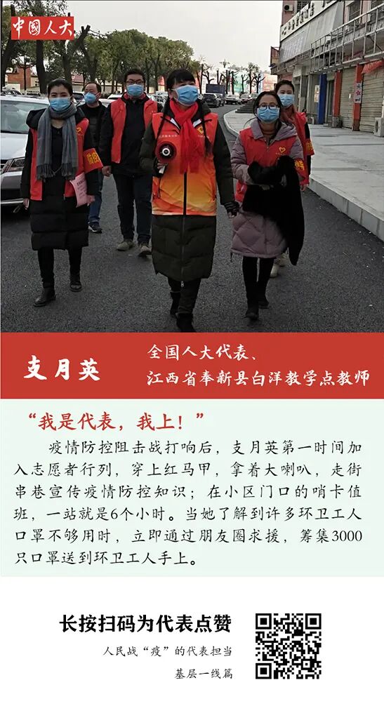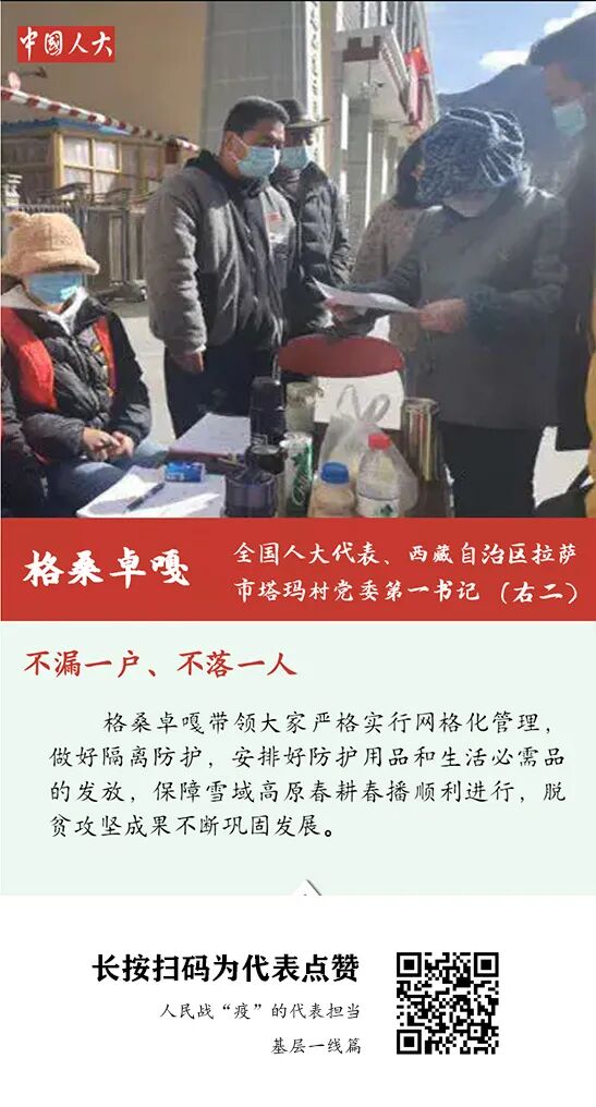 社区基层是疫情防控的一线,守好基层就守好了与疫情抗争最激烈的战场。身处基层一线的全国人大代表,把担当与奉献化为每日为居民测量体温、送菜送饭,化为乡村卡口24小时的值守,用实际行动守护人民生命健康。