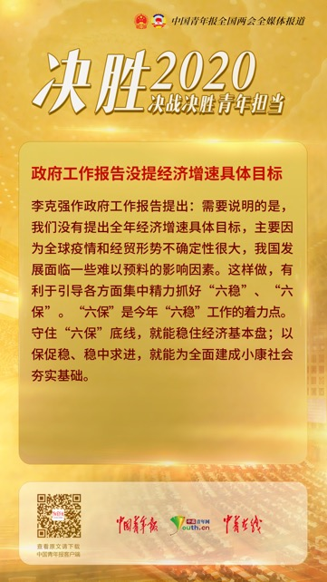 今年的政府工作报告非常罕见的一点是,未提全年经济增速具体目标。国务院总理李克强今天在作报告时提出:需要说明,我们没有提出全年经济增速具体目标,主要因为全球疫情和经贸形势不确定性很大,我国发展面临一些难以预料的影响因素。