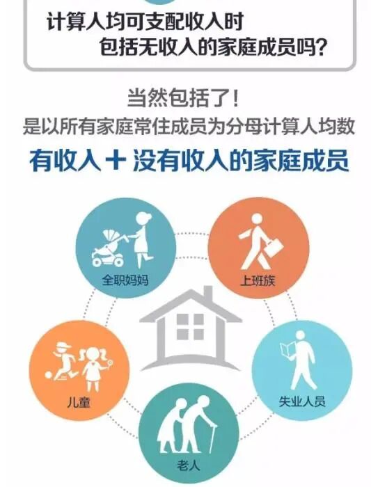 需要注意的是,计算人均可支配收入时包括无收入的家庭成员,是以所有家庭常住人员为分母计算人均数。