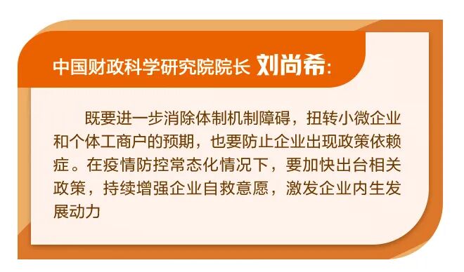 当前,新冠肺炎疫情对市场主体造成了一定冲击,影响了它们对市场的预期。刘尚希表示,既要进一步消除体制机制障碍,扭转预期,也要防止企业出现政策依赖症。在疫情防控常态化情况下,要加快出台相关政策,持续增强企业自救意愿,激发企业内生动力。