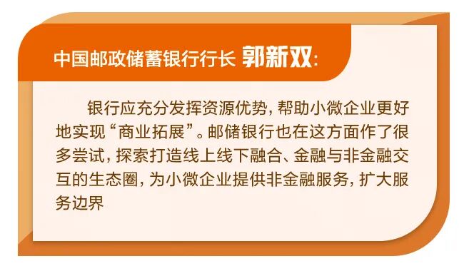 “对于小微企业来说,融资固然重要,但企业融资的最终目的是实现可持续发展。”郭新双认为,服务小微企业不仅要“融资”,也要“融商”。银行应充分发挥资源优势,帮助小微企业更好地实现“商业拓展”。邮储银行也在这方面作了很多尝试,探索打造线上线下融合、金融与非金融交互的生态圈,为小微企业提供非金融服务,扩大服务边界。