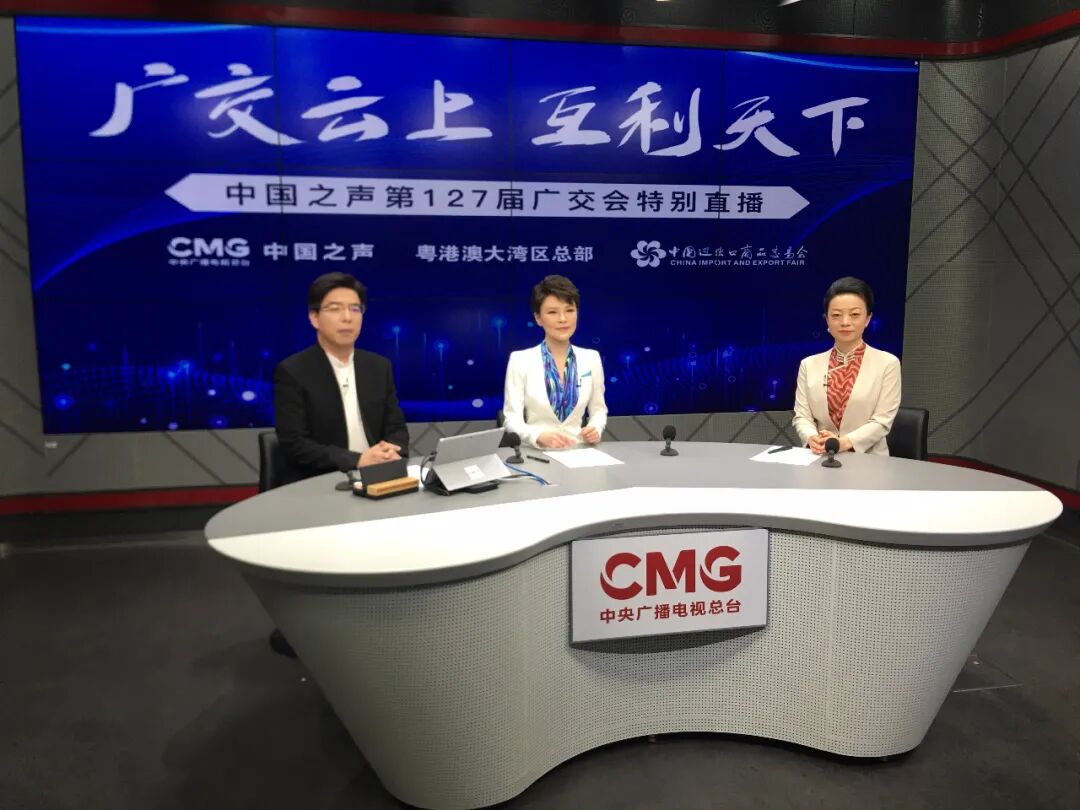 在广交会云端开启的同时,中央广播电视总台中国之声、粤港澳大湾区总部、央视新闻新媒体联合推出特别直播节目《广交云上,互利天下》,这也是中国之声广播频率与央视新闻新媒体首次实现音视频同步“多点融合”直播。