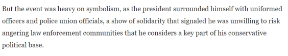 《华盛顿邮报》则指出,特朗普的这次行政令签署充满形式主义,仪式上他身边簇拥着身着制服的警察与警察协会的官员,展示着一种团结,表明特朗普显然不愿冒险激怒执法部门,因为这些是他保守派政治基础的重要组成部分。▲
