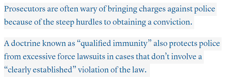 警察杀害或伤害平民后更不容易受到惩罚↓↓