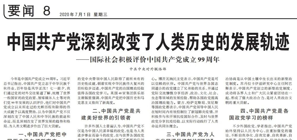 - 2020-06-30特稿:人民至上 计利天下——中国共产党99周年华诞的世界印象