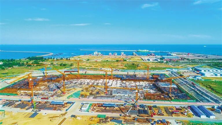 6月12日,航拍位于海口西海岸的海口国际免税城项目施工现场