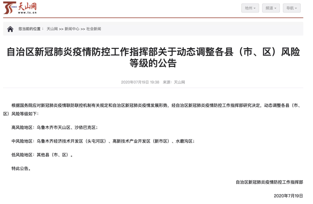 - 2020-07-18直面新疫情丨乌鲁木齐按下暂停键 记者实地探访当地社区