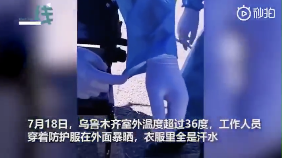 高温烈日下,一则“新疆防疫人员脱下防护服倒出汗水”的视频刷屏网络↓