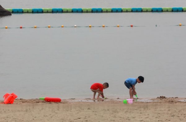 中国各地逐渐走出疫情影响。图为小朋友在7月25日恢复试营业的武汉东湖沙滩浴场玩耍。(赵军 摄)