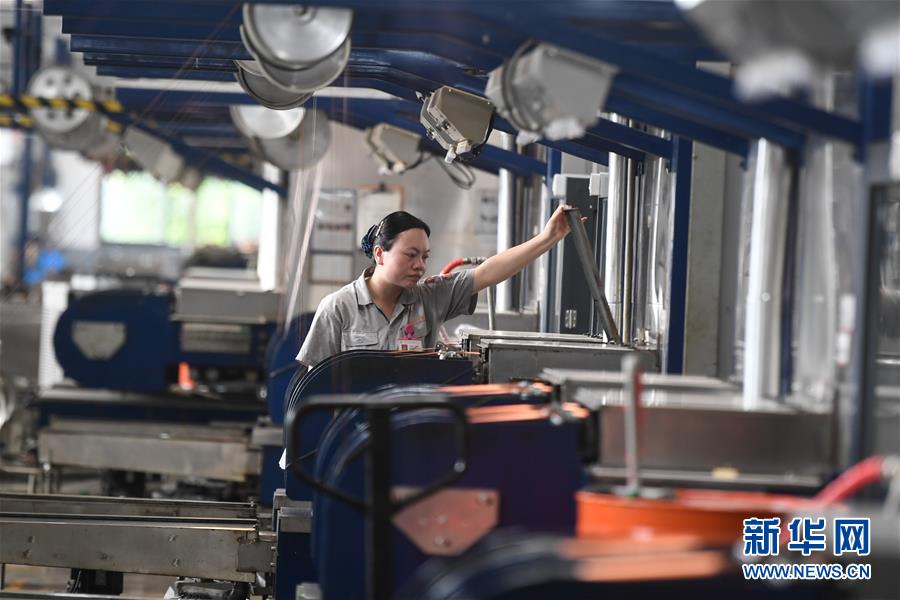 工人在位于浙江湖州吴兴高新区的先登高科电气有限公司电磁线生产车间作业(7月29日)。新华社记者 黄宗治 摄