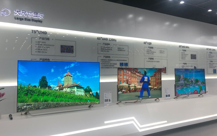 TCL华星光电展示大厅里展示的大尺寸显示屏成像效果,其公司累计在半导体显示领域投资超过2000亿元。人民网 邢郑摄