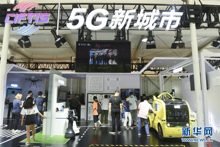 观众在2020年中国国际服务贸易交易会5G通信服务专题展区参观(2020年9月7日摄)。 新华社记者 鲁鹏 摄