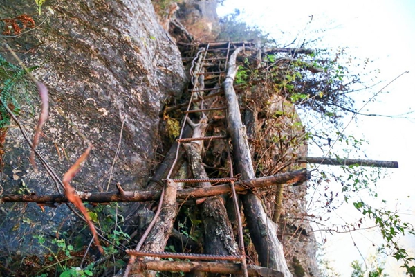 “悬崖村”过去外出的藤梯。人民网 朱虹摄
