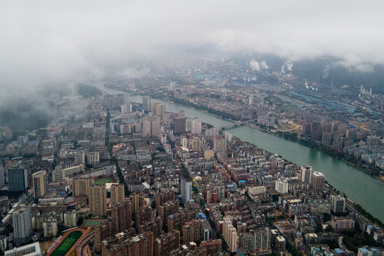 2020年11月22日下午,天气晴朗,航拍的三明市城区。