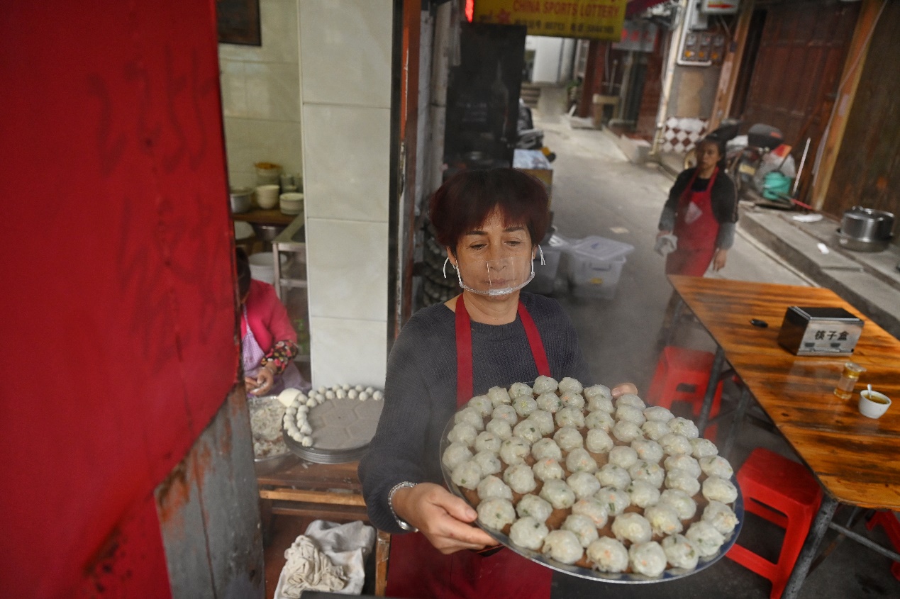 2020年11月23日,三明市沙县,佳兰烧卖,店主在制作沙县烧卖。由于沙县烧卖的制作工艺比较繁琐,所以外地的沙县小吃店基本没有售卖,正宗的沙县烧卖只能在沙县才能吃得到。